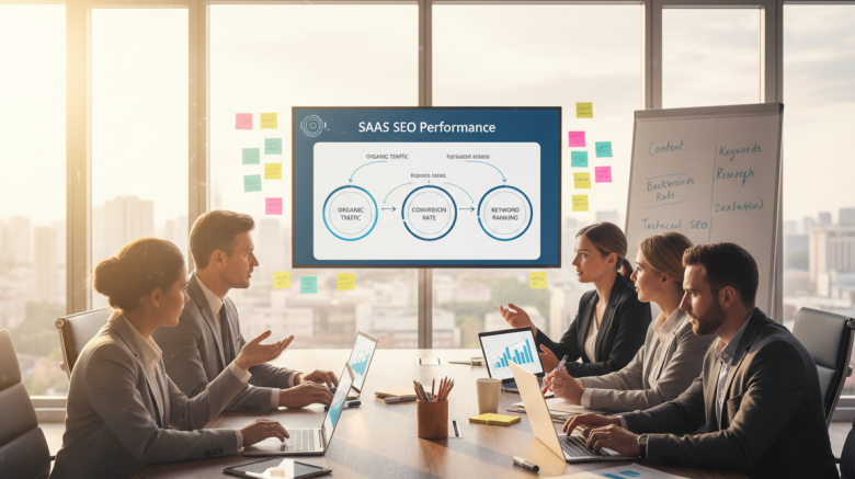 Setting realistic milestones is critical for measuring SaaS SEO ROI. Early ranking gains can emerge in 60–90 days, with measurable traffic growth often appearing by month six. Wider conversion improvements usually develop across a six- to twelve-month window. Key metrics include organic traffic, rankings for high-intent keywords, trial signups, demo requests, MQLs, SQLs, CAC reduction, and lifetime value improvements.